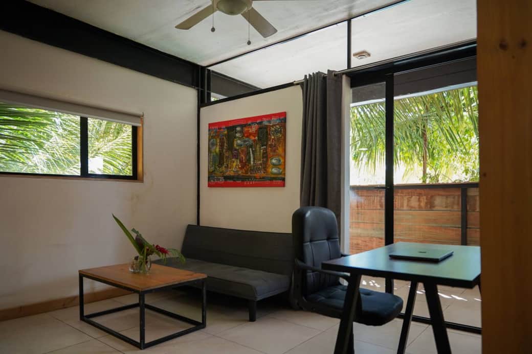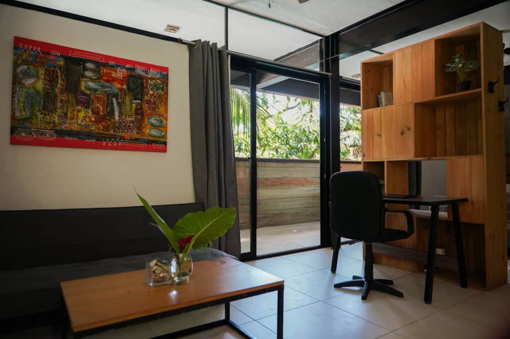 Disfrute de su estancia en nuestro estudio rodeado de naturaleza idealmente ubicado en Santa Teresa, a solo 150 metros de la playa y cerca de restaurantes, supermercados y tiendas. Cuenta con Wi-Fi potente, cocina completa, cómodo sofá y baño con agua caliente. Relájese en su balcón privado con hamaca y disfrute de las vistas a la jungla. Perfecto para parejas, VED Beach Apartments ofrece una ubicación en la carretera principal, cerca de la playa y todo lo que Santa Teresa ofrece. El estudio cuenta con cama doble, un acogedor sofá y un baño completo con agua caliente. Incluye una cocina totalmente equipada, aire acondicionado, ventilador de techo y excelente Wi-Fi de fibra óptica. Disfrute de su propio balcón privado con hamaca y mesa al aire libre. Estamos ubicados a 150 metros del mejor punto de surf de la playa de Santa Teresa es el paraíso de los surfistas. Si no surfea - no se preocupe! Hay un montón de otras actividades y servicios disponibles en Santa Teresa, incluyendo yoga, pilates, clases de baile, excursiones en barco, paseos a caballo, tratamientos de spa y masajes. Descansando en una hamaca o en la playa es siempre una buena opción también! podes moverte a pie, alquilar bicicleta, alquilar cuadra, o si son muchas personas un auto es lo mejor esta en el centro cerca de supermercados, tiendas, restaurantes,