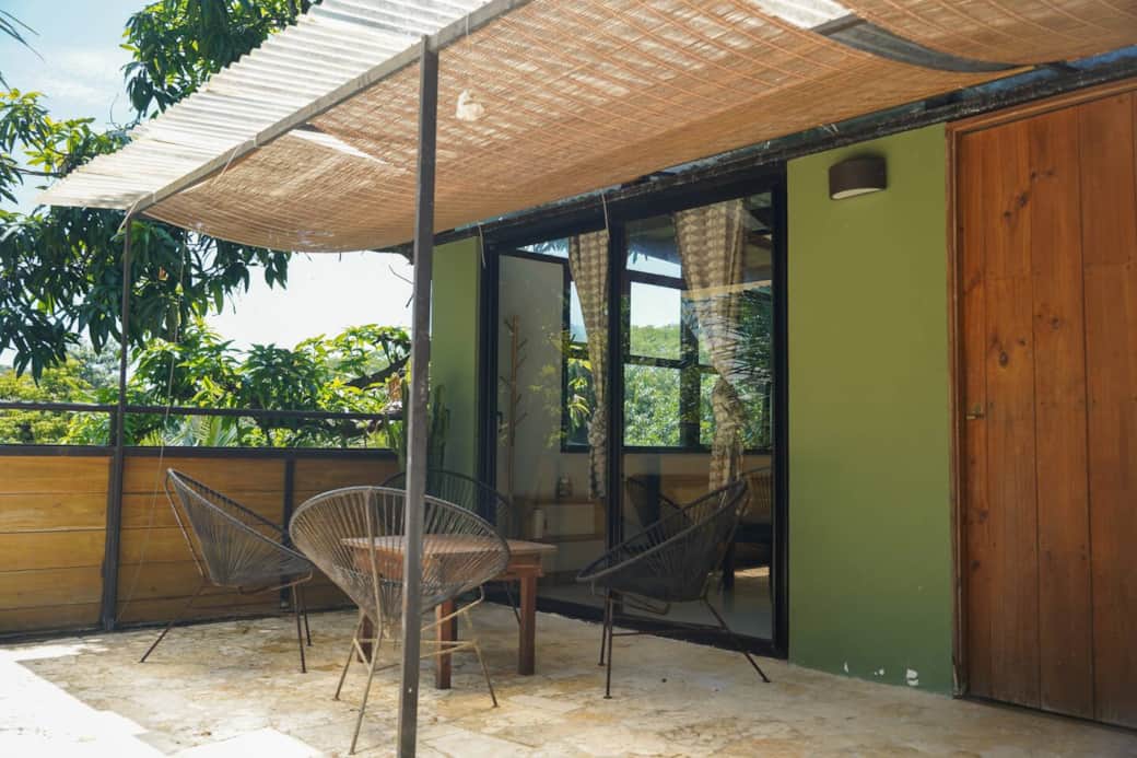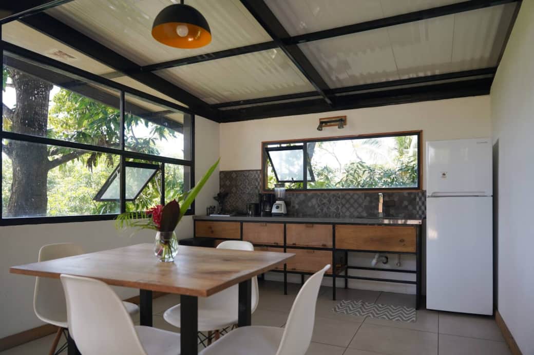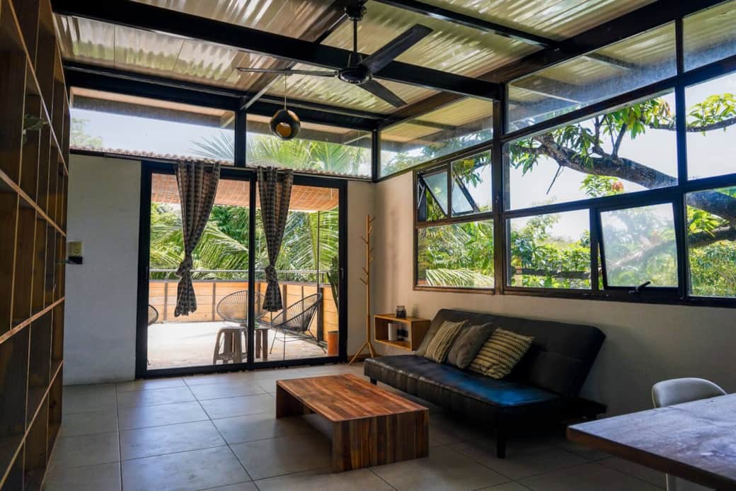 Enjoy your stay in our charming two-bedroom house, ideally located in Santa Teresa, just 150 meters from the beach and close to restaurants, supermarkets, and shops. Surrounded by lush greenery, the house features a living area and kitchen enclosed in glass, offering stunning views of the surrounding nature. Ideal for friends or families, this home provides a prime location on the main road, close to the beach and everything Santa Teresa has to offer. The house features two bedrooms, each with a double bed, a cozy living area, and a full bathroom with hot water. It includes a fully equipped kitchen, air conditioning, a ceiling fan, and excellent fiber optic Wi-Fi. Enjoy the spacious terrace and the stunning views that the house offers.